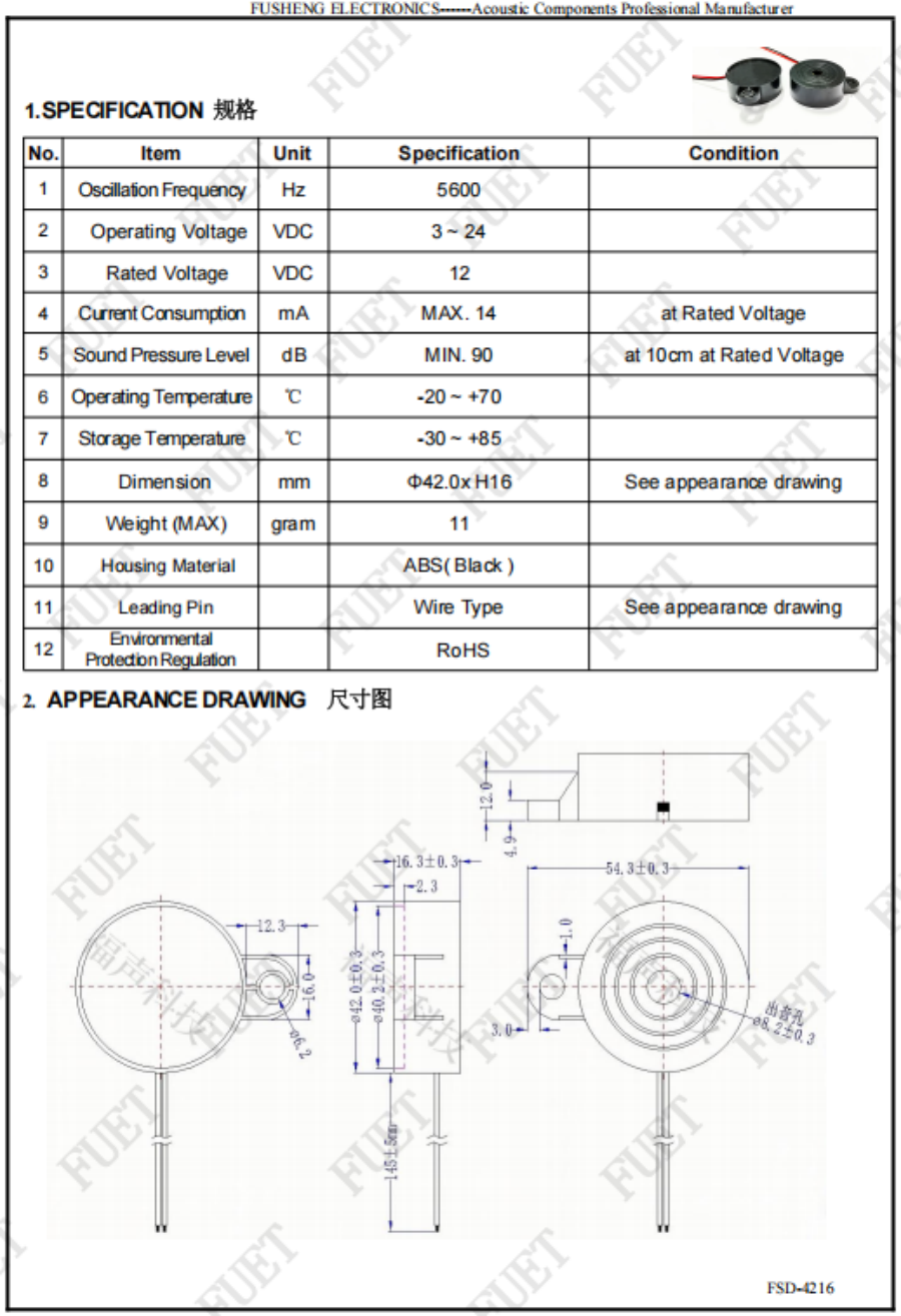 压电蜂鸣有源FSD-4216 -IC单耳